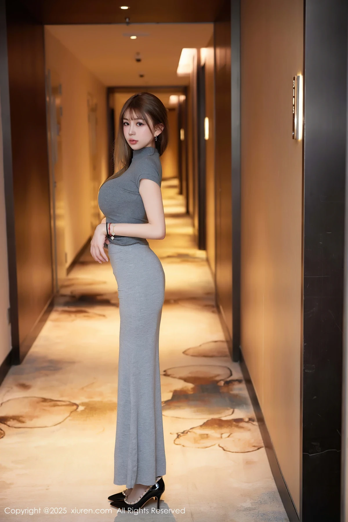 狭长的酒店走廊,暖色的灯光在墙壁上投下柔和的光影,营造出一种静谧而私密的氛围。地面的地毯有着独特的抽象纹理,为这个看似普通的通道增添了几分艺术气息。就在这...